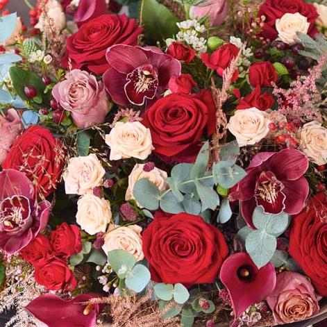 One of our bigger festive bouquets, this one is a stunning arrangement of fresh Christmassy flowers, expertly chosen by a local florist.